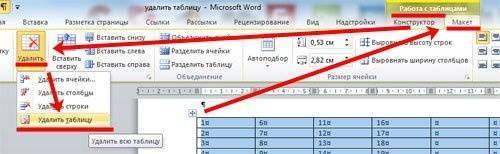 Есть другой способ решить наш вопрос. Выберите его, перейдите на вкладку «Инструменты для таблиц» и откройте вкладку «Макет». Здесь вы найдете пункт «Удалить», щелкните по нему и выберите в меню »пункт« Удалить таблицу».