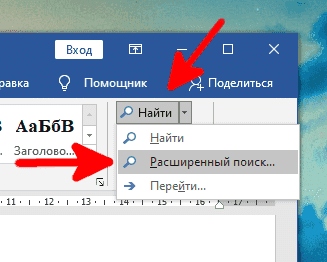 Откройте документ Word, содержащий выделенный текст, и щелкните стрелку вниз рядом с кнопкой «Найти» в группе «Правка» на вкладке «Главная». Затем в раскрывающемся меню выберите «Расширенный поиск.