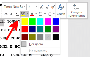 Как выделить цветом текст в Word