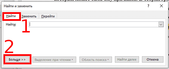 Откроется окно «Найти и заменить». На вкладке «Найти» выберите параметр «Дополнительно>>».