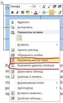 Вы также можете создать в Word отдельное выравнивание по высоте и длине линий. Для этого нужно еще раз выделить таблицу, перейти в контекстное меню и выбрать соответствующие пункты (см. Снимок экрана).