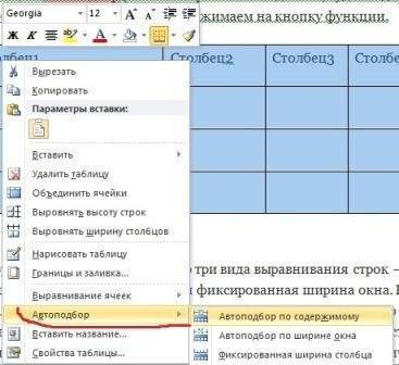 После выбора нашей таблицы мы просто щелкаем по ней правой кнопкой мыши и видим контекстное меню. Именно в этом меню ищем функцию автоматического выбора (на моем скриншоте выделено место, где нужно щелкнуть, чтобы выбрать эту функцию) и нажимаем на кнопку функции.