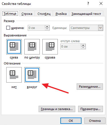 Откроется окно «Свойства таблицы». Здесь, во вкладке «Таблица», вы можете выбрать выравнивание «По левому краю», «По центру» или «По правому краю».
