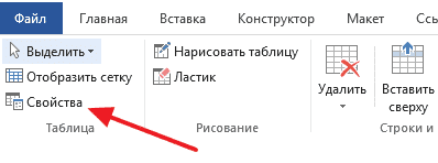 Также иногда возникает необходимость выровнять размещение самого стола. Для этого выберите таблицу, перейдите на вкладку «Макет» и нажмите там кнопку «Свойства» (эта кнопка находится в левой части окна).