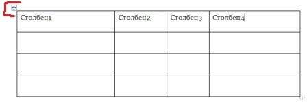 Наведите указатель на таблицу, чтобы отобразить маркер перемещения таблицы а затем щелкните маркер перемещения стола.