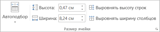На вкладке «Макет» в группе «Размер ячейки» нажмите кнопку «По размеру.