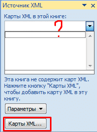 - Если Excel не видит карты XML, вам необходимо их добавить. Щелкните Карты XML. И указываем путь к нашему файлу с вышеупомянутой схемой карты, созданной в текстовом редакторе.
