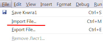 - В окне редактора Visual Basic в меню «Файл» выберите «Импортировать файл.