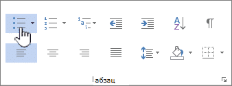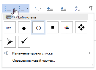Щелкните стрелку вниз рядом со значком маркированного списка. .
